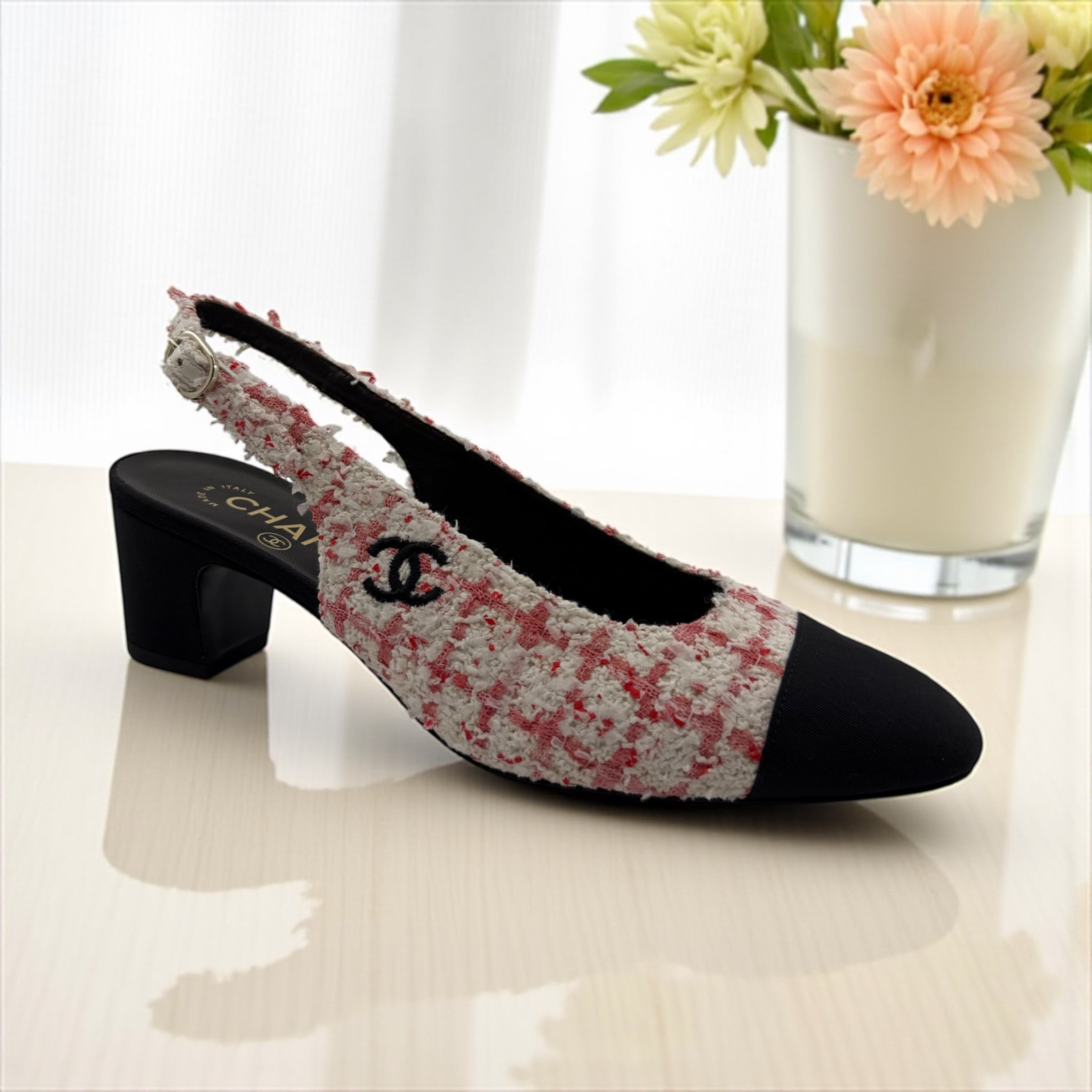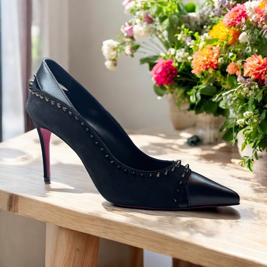 Chanel CC Suede Pearl Calfskin Pumps